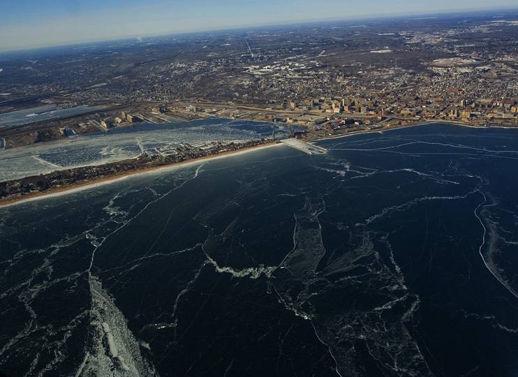 Lake Superior is frozen fast for a large area out from Duluth, local fishermen report 8" of ice observed several hundred yards from shore.