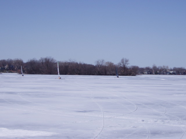 3 DN's sailing on April 13, 2008 out of Shorewood Yacht Club on way out to main lake. Global warming skipped Minnesota this winter.